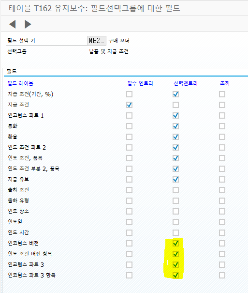대신 헤더에 Incoterms 탭이 생겨나게 되었고, 해당 탭의 데이터를 관리하기 위해서는 별도의 IMG 설정을 해주어야 함.