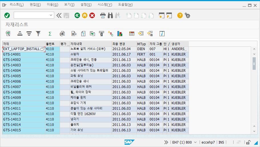 서버는 생각보다 깔끔하고 속도도 느리지 않았습니다. 들어온김에 자재마스터 한 번 봐볼까요? T-Code MM60 을 통해 자재마스터를 조회 합니다.