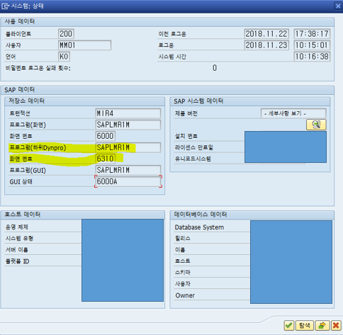 시스템-상태를 열어보면 프로그램명과 화면 번호를 확인할 수 있어요.