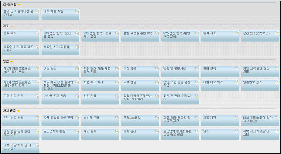이렇게 업무 영역별로 시나리오가 제공되고 클릭해세 세부정보를 확인해보면 구성 안내서, 시나리오 개요, 비즈니스 프로세스 문서를 다운로드 받을 수 있는 구조였죠.