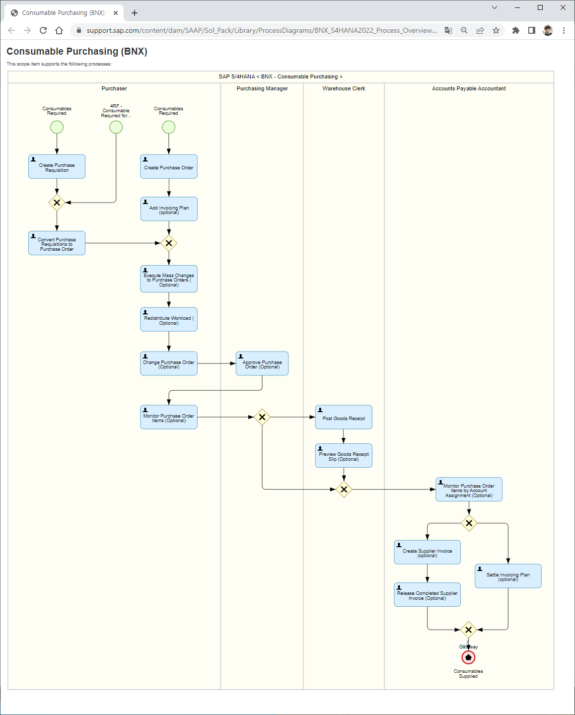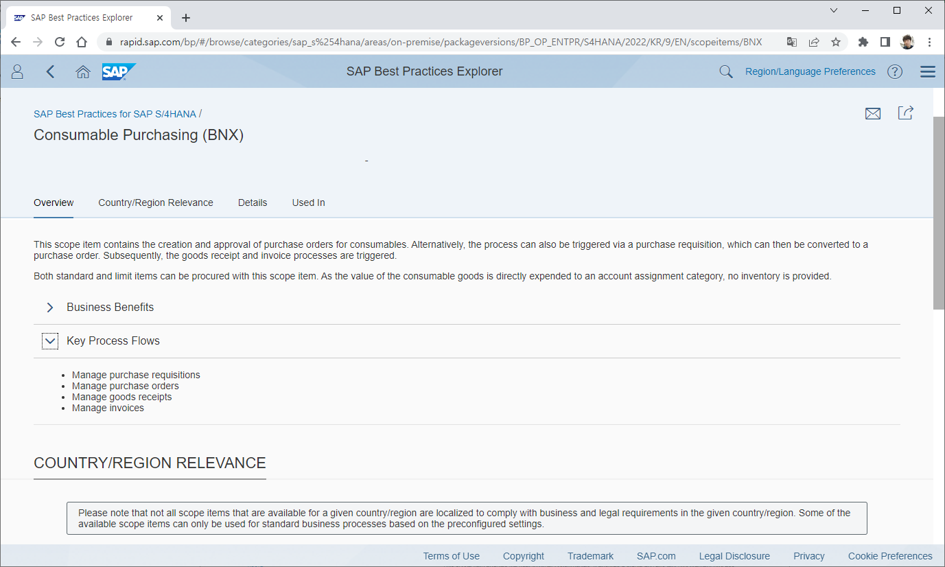 샘플로 Consumable Purchasing 에 대해 문서를 확인해봤는데 아직은 예전 버전 만큼 상세한 문서 제공은 안되는 것 같지만 Business Process Flow 는 확인할 수 있었고, 이 부분은 차차 보완될 것이라 믿고 있습니다.